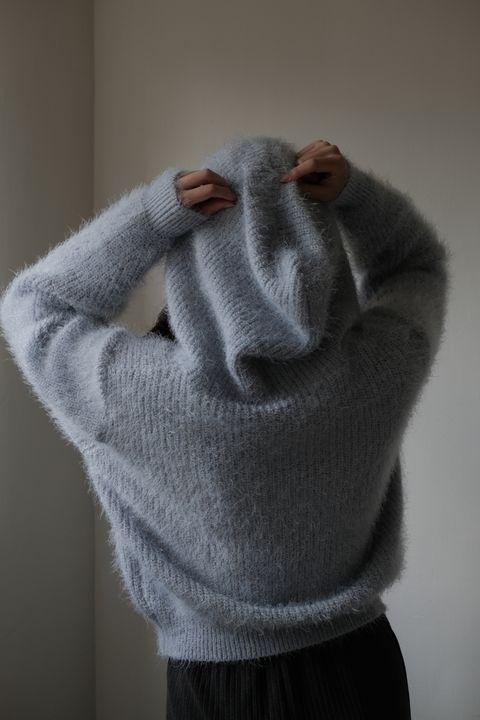暗霧羊駝毛鬆身罩衫/霧灰 奶杏 咖啡
