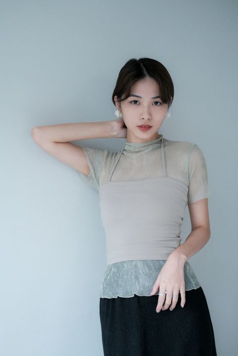 暖珀透膚皺感仙女光澤襯衫 / 珠光杏 銀河灰